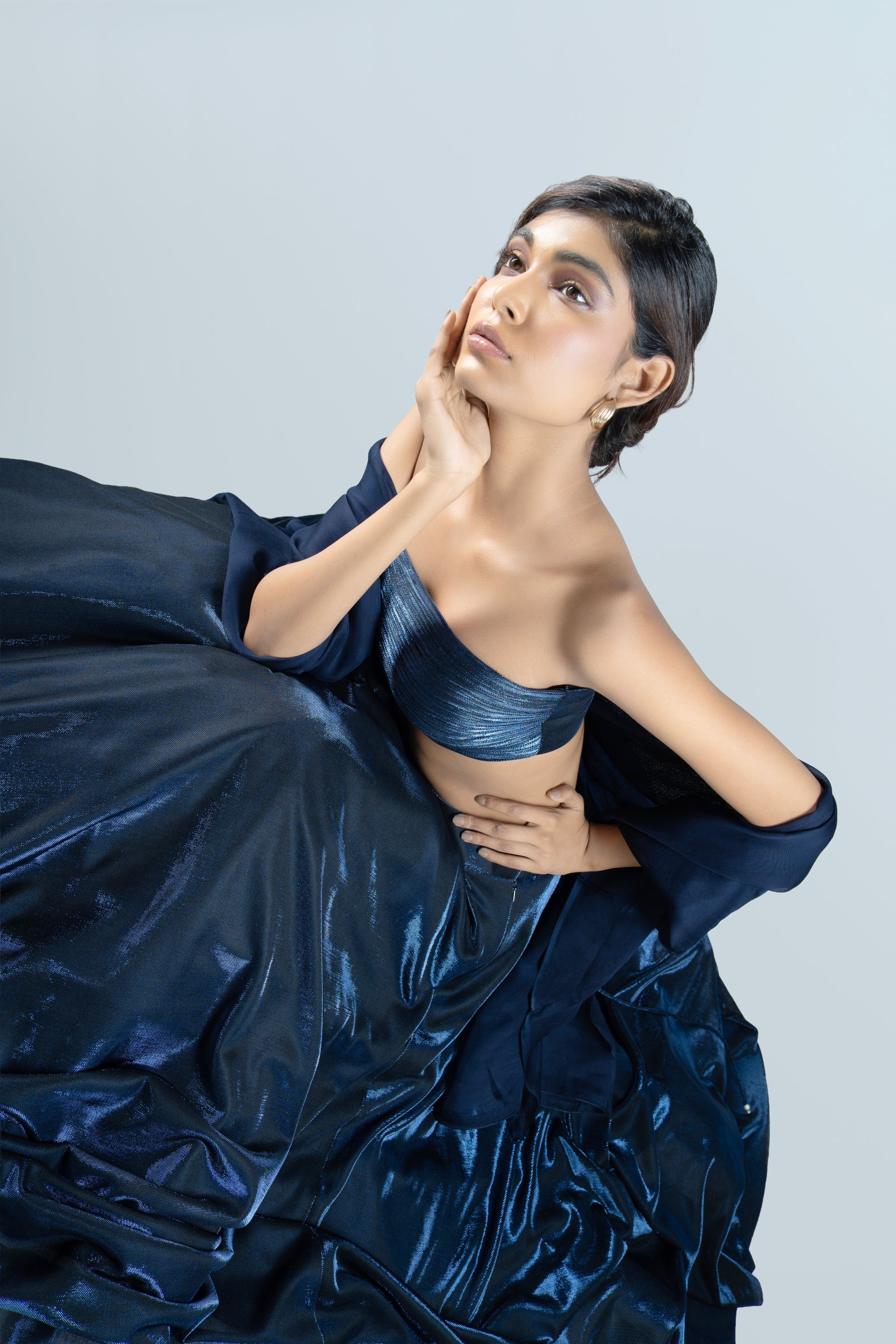 NAVY BLUE BIRKIN LYCRA LEHENGA
